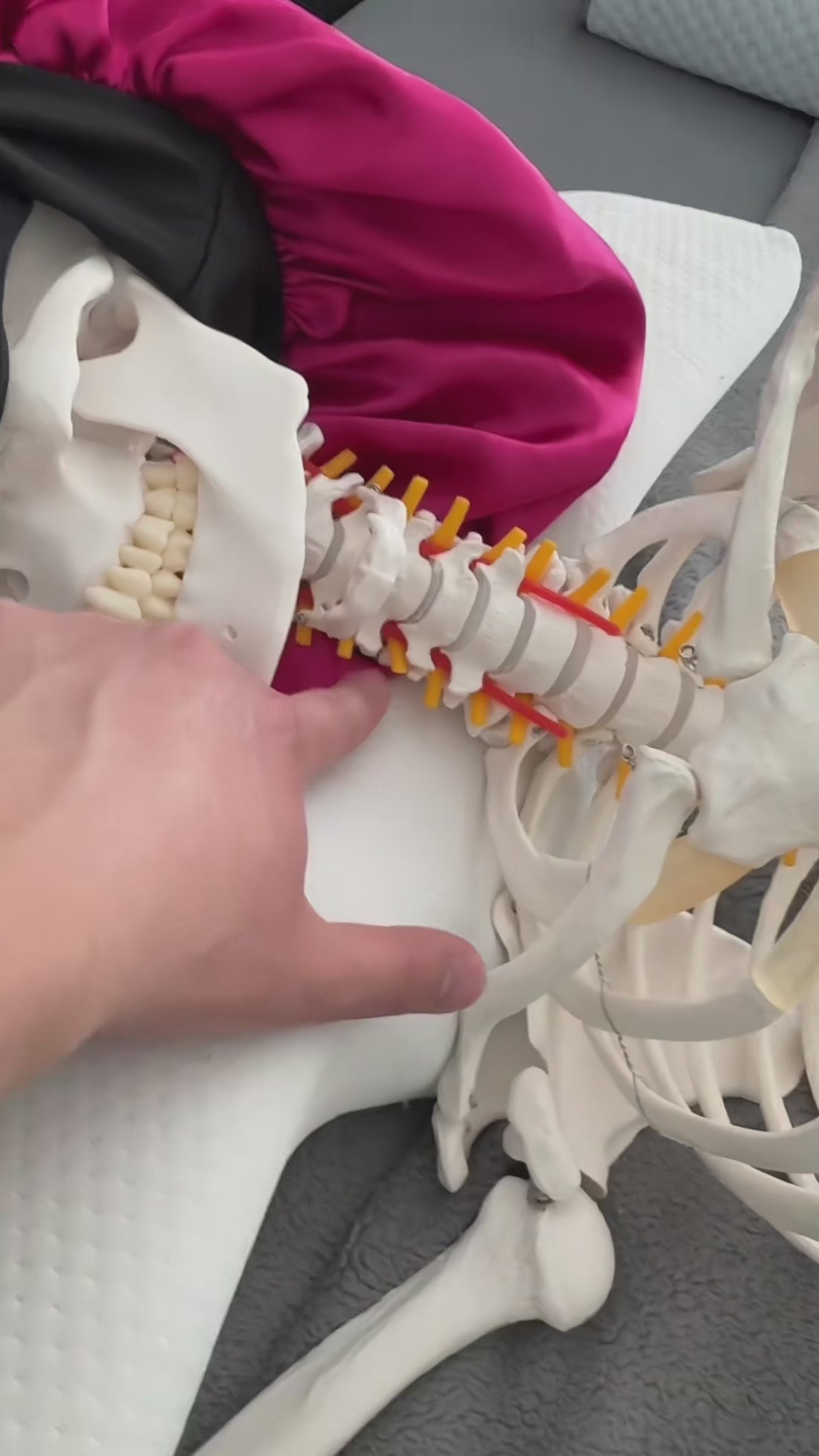 Większość osób śpiących na boku cierpi właśnie dlatego, że zwykła poduszka nie wspiera szyi. Cały ciężar głowy spada na kark, a ramię nie ma gdzie się ułożyć. Bark jest przygnieciony, łopatki napięte, a kręgosłup wygięty w nienaturalny sposób.